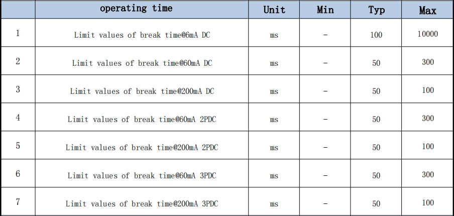 Model Corresponding standards DC trigger threshold AC trigger threshold