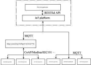 The MQTT protocol for power distribution IoT achieves different purposes by defining different topics. A single topic can contain multiple levels, with slash characters separating different levels. For example, the edge computing terminal adds end devices through the topic /v1/devices/{gatewayId}/topo/add.