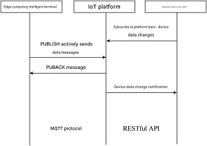 The end device can communicate with the IoT platform directly via the MQTT protocol, or it can communicate with the IoT platform via the local network through the edge computing smart terminal and then via the MQTT protocol.