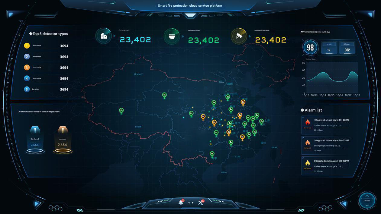Actively promoting the construction of the Internet of Fire Protection has become an urgent practical need. By utilizing advanced technologies such as the Internet of Things, big data, artificial intelligence, and GIS maps, combined with front-end IoT sensing devices such as smoke, electricity, water, and gas, a set of “human defense” + “technical defense” + “physical defense” fire protection IoT management platform is established to provide social units with fire safety situation awareness, online monitoring, real-time early warning, police situation handling, fire inspections, resource management, training and drills, and other applications as one of the overall solutions for smart fire protection, and improve the level of fire safety management and analytical decision-making. At the same time, it provides data support for governments and fire management departments at all levels to jointly build a smart city safety system.