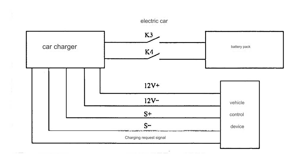 As shown in the on-board charger control boot circuit diagram above, after completing the connection confirmation process, the on-board charger sends a charging request signal to the VCU and supplies power to the vehicle controller through a low-voltage power supply. If the VCU determines that the battery pack can be charged, it sends a charging message to the on-board charger.